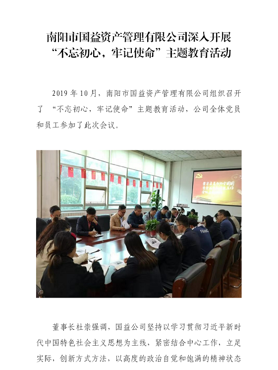南陽市國(guó)益資產(chǎn)管理有限公司深入開展 “不忘初心,牢記使命”主題教育活動(dòng)